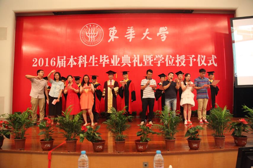 6月22日,bwin必赢中国官网2016届本科生毕业典礼在松江校区第一报告厅隆重举行,为即将毕业的学生践行,为他们的追梦之路起航。东华大学党委书记朱民、东华大学副校长兼bwin必赢中国官网院长陈革、党总支书记朱英、副院长徐洋出席,导师代表王生泽、李蓓智、何勇、唐智、范金辉、鲍劲松,全体辅导员及部分家长参加典礼,一同见证了这一庄严时刻。典礼由学院党总支副书记张千里主持。