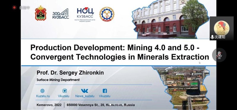 9月22日,由bwin必赢中国官网与俄罗斯库兹巴斯国立技术大学共同举办的“智能制造与设计”系列讲座第二讲《工业发展:以采矿工业4.0与5.0融合技术为例》以远程会议形式举办。bwin必赢中国官网唐智教授,倪敏娜副教授,库兹巴斯国立技术大学热龙金·谢尔盖·亚历山德罗维奇教授、副校长助理胡婷婷等教师与学生代表参加本次活动。